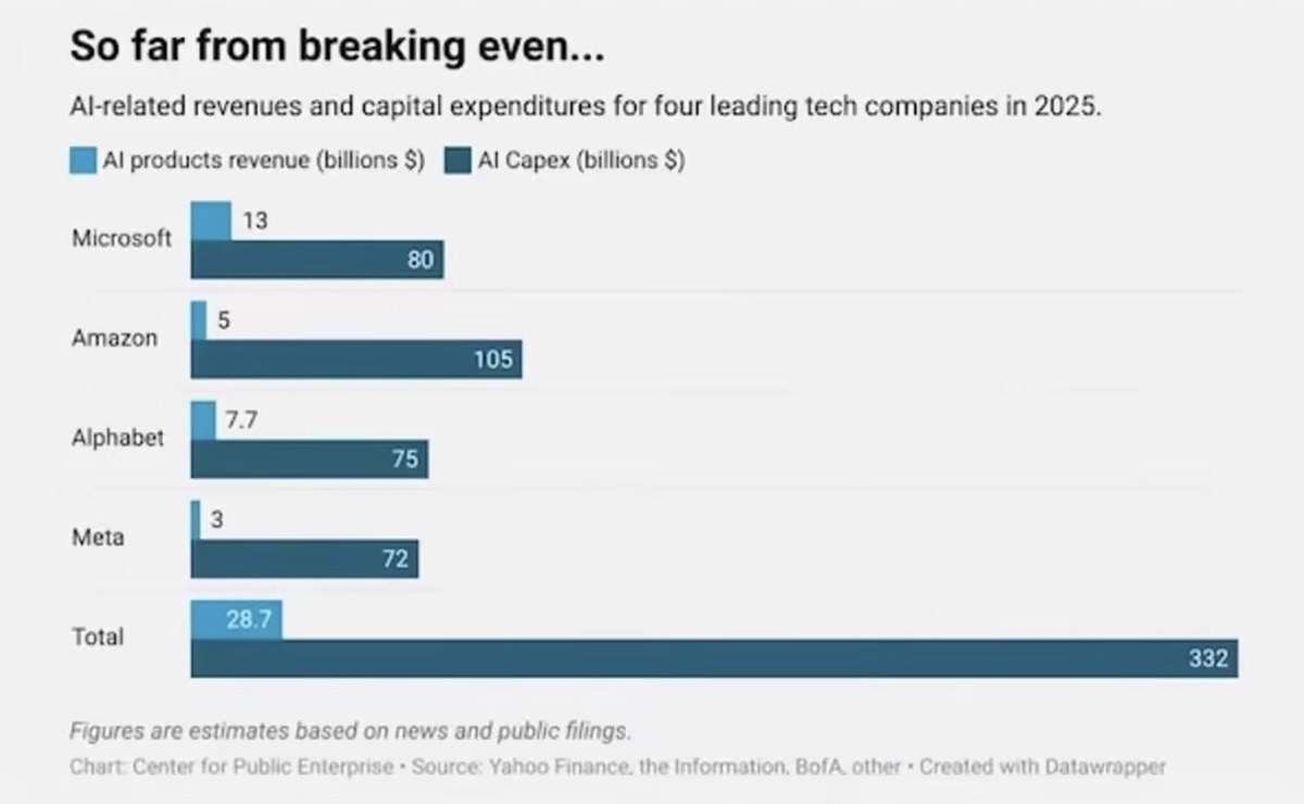 Big Tech investe centenas de milhares de milhões — mas gera pouco lucro direto com IA