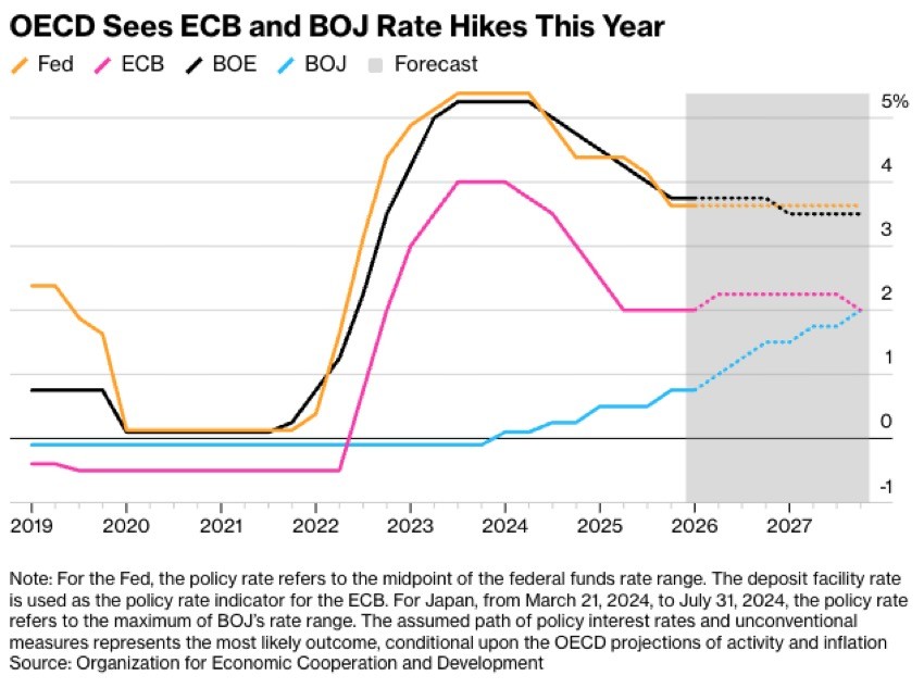• BoJ (Japão): O aperto monetário deverá intensificar-se.