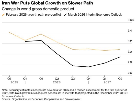 O mais recente relatório da Organização para a Cooperação e Desenvolvimento Económico (OCDE) desenha um cenário de "nuvens carregadas" para a economia mundial nos próximos dois anos. O impacto direto do conflito no Irão alterou drasticamente as projeções de Fevereiro, forçando os bancos centrais a manterem políticas monetárias restritivas por mais tempo do que o antecipado.