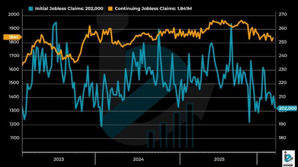 Por outro lado, os pedidos contínuos de subsídio de desemprego subiram para 1,841 milhões, ligeiramente acima das previsões (1,839M) e dos 1,819 milhões anteriores.