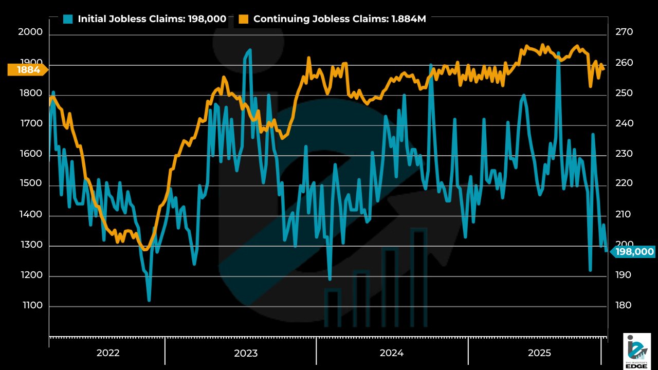 Novos pedidos recuam para 198 mil e pedidos contínuos também surpreendem pela positiva, reforçando a resiliência do mercado de trabalho norte-americano.