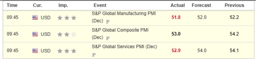 Os Estados Unidos divulgaram os PMIs preliminares (Flash) de novembro, indicadores que medem a atividade económica com base em inquéritos a gestores de compras. Os dados apontam para um abrandamento do crescimento, mas mantêm-se acima do nível de 50, que distingue expansão de contração económica.