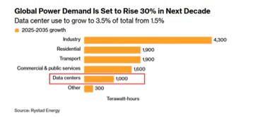 Entre 2025 e 2035, projeta‑se que os data centers adicionem cerca de 1.000 TWh de consumo, um dos maiores incrementos setoriais de toda a economia global. Esta pressão obriga a uma combinação agressiva de novos projetos de geração, reforço de redes, armazenamento e maior eficiência na conceção dos próprios centros de dados.