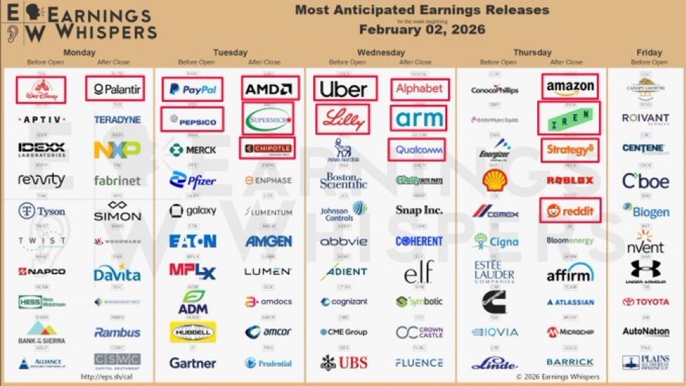 A semana de 2 a 6 de fevereiro será uma das mais intensas da época de resultados, com várias empresas de grande capitalização a apresentarem contas. O foco estará em tecnologia, inteligência artificial, consumo e indústria, setores chave para o sentimento do mercado.